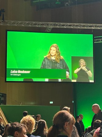 Ein emotionaler Höhepunkt am 2. Tag war die Verabschiedung von Frederic Carpenter als Bundesschatzmeister und Ricarda Lang als Bundesvorsitzende. Besonders beeindruckend war die Abschiedsrede von Luisa Neubauer, die viele persönliche Worte für Ricarda fand und die Bedeutung des Klimaschutzes erneut eindringlich hervorhob. Sie sprach aber auch treffend und humorvoll über die Schwierigkeiten, denen junge Frauen wie sie und Ricarda in der Öffentlichkeit immer noch ausgesetzt sind.