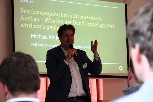 Die Frage ist nicht ob, sondern wie man den Ausbau der Windkraft hinbekommt. Der Bund hat dazu bereits vielfältige Anstrengungen unternommen, wie der Bundestagsabgeordnete Michael Kellner berichtete. Gerade den ländlichen Raum zu stärken sei ihm ein wichtiges Anliegen. Kellner erläuterte, dass durch die Reformen beim Ausbau der Erneuerbaren Energien auch die Kommunen direkt profitieren können: „Mit der seit dem 1. Januar gültigen Reform des Erneuerbaren Energien Gesetz (EEG 2023) ist es endlich rechtssicher möglich geworden, Kommunen mit bis zu 0,2 Cent pro Kilowattstunde am vor Ort erzeugten Wind- oder Solarstrom zu beteiligen“ erklärte der Bundespolitiker. So könne eine Kommune mit 20.000 bis 30.000 Euro pro Windrad und Jahr über die kommenden 30 Jahre rechnen. Zudem gelte weiterhin das Brandenburger Gesetz, wonach pro neuer Windenergieanlage 10.000 Euro an die Kommunen abgeführt werden müssen. „Das kommt noch on top“, so Kellner.