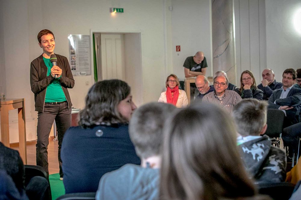Mit der Europa-Hymne begrüßte die neu gegründete "Grüne Kapelle" am Montagabend die Spitzenkandidatin der europäischen Grünen Ska Keller auf dem Cottbuser Altmarkt. Die Europapolitikerin Keller hatte gemeinsam mit den Lausitzer Bündnisgrünen zu einem "Town-Hall-Meeting" in das Alte Stadthaus geladen. Zu dem Austausch kamen mehr als 70 interessierte Lausitzerinnen und Lausitzer, um sich über grüne Politik zu informieren. Im Gegensatz zu klassischen Wahlkampfveranstaltungen mit Frontalreden hatten sich die Bündnisgrünen für ein offenes Format entschieden: "Heute Abend geht es um Ihre Fragen zu Europa", sagte die Moderatorin des Abends Heide Schinowsky. Es folgte ein Frage-Rundumschlag quer durch viele Themen angefangen von Europa als Friedensprojekt bis zum Kampf gegen den überbordenden Plastikmüll, von der Kritik an der Internet-Zensur durch die neue Urheberrechtsreform bis zur Unterstützung des Strukturwandels.