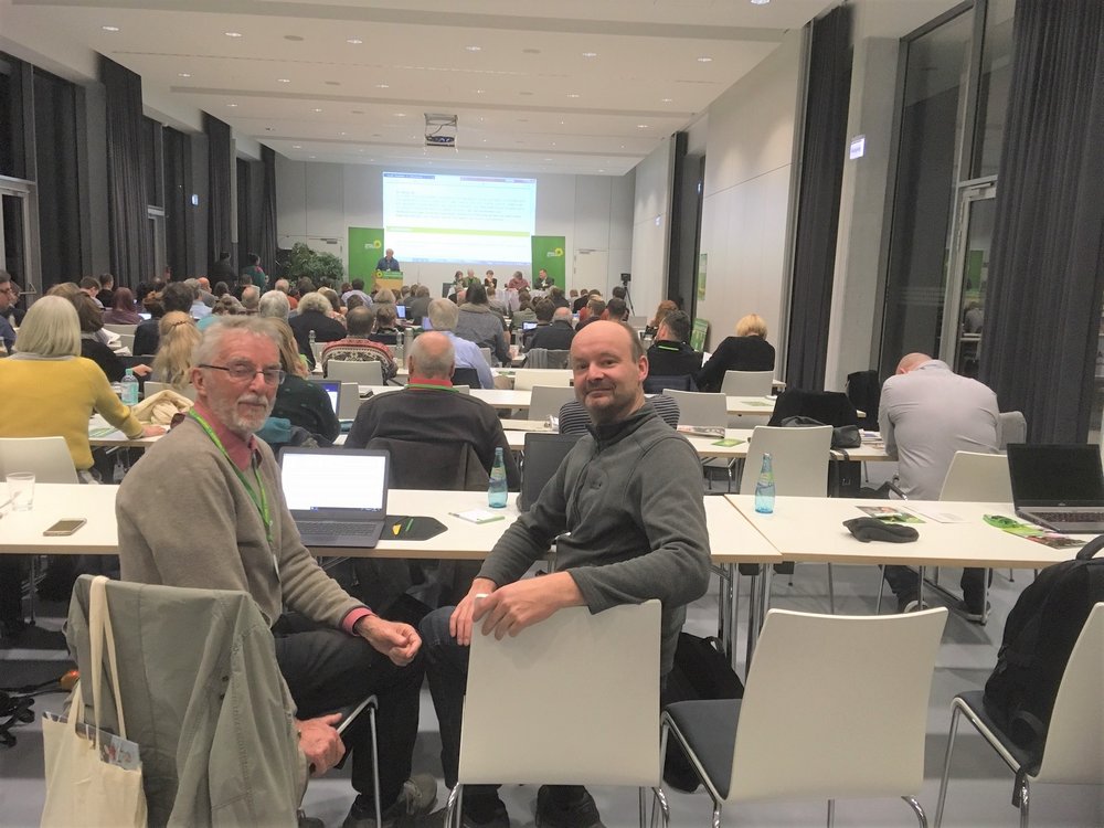 Aufmerksam und interessiert verfolgen Winfried Böhmer und Stefan Schön die LDK. Neben einer flammenden Rede von Annalena Baerbock und interessanten Grußworten stehen viele Anträge und noch mehr Änderungsanträge dazu zur Diskussion. Das Hauptthema "Wahlprogramm" zur Landtagswahl 2019 steht zur Diskussion. Selbst die Ambrosia, welche in unserem Landkreisen im Süden wuchert, hat es in einen Antrag geschafft (Antrag 2.5 "Gut und Gesund Leben").