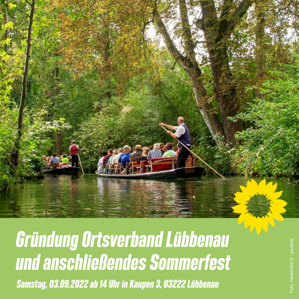 In den vergangenen Monaten sind viele neue Mitglieder und Sympathisant*innen zu unserem Kreisverband gestoßen. Wir gründen einen ersten Ortsverband in Lübbenau und laden im Anschluss herzlich ein zu einem kleinen Sommerfest in den Spreewald am Samstag, 03.09.2022 ab 15:00 Uhr (genaue Adresse wird nach Anmeldung mitgeteilt).