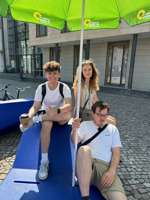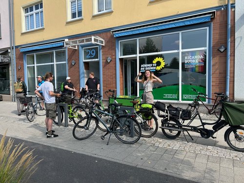 Am zweiten Tag engagierte sich die Delegation tatkräftig im Wahlkampf. Auf dem Markt in Senftenberg wurde ein Infostand betreut, gefolgt von einer Fahrradtour rund um den Senftenberger See, bei der Flyer verteilt wurden.
