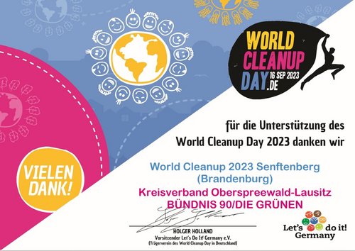 In Deutschland wurde ebenfalls ein phänomenales Ergebnis mit über 400.000 Teilnehmenden in über 9.000 Cleanups und in über 2.000 Kommunen erzielt. Der bisher größte World Cleanup Day in Deutschland! Unser Kreisverband beteiligte sich auch in diesem Jahr wieder an der Aktion und hat den Festplatz Laugkfeld zusammen mit vielen fleißigen Helfer*innen von Unrat und Müll befreit.